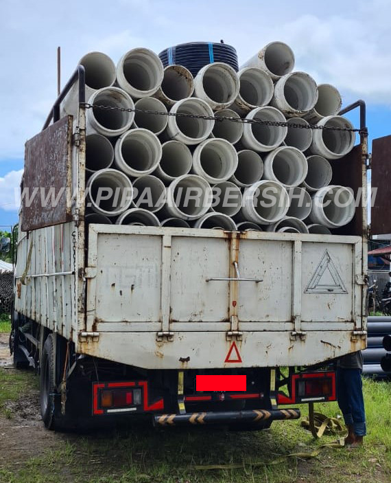 Pengiriman pipa PVC 12″ ke Semarang. Gambar diambil dari gudang kami daerah Benteng, Bogor.